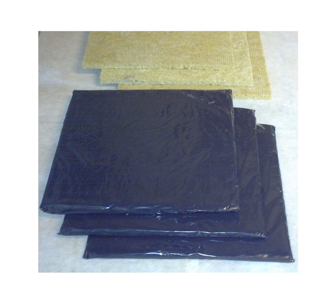 45 to 140kg rock fibre core that is classified as Euroclass A1 to BS EN 13501-1 in thicknesses of 8mm to 200mm depending on the density of the donor board faced with 250 gauge black polythene. Polythene with a fire retardant additive is available for larger projects on application.