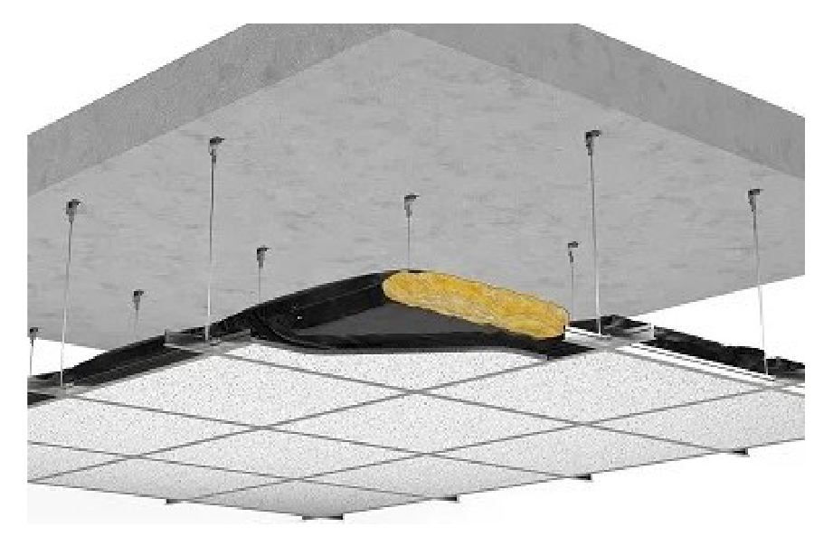 CCL also produce a range of slabs that are foil faced, edged and returned, with a black glass face for use above perforated metal ceilings tiles.